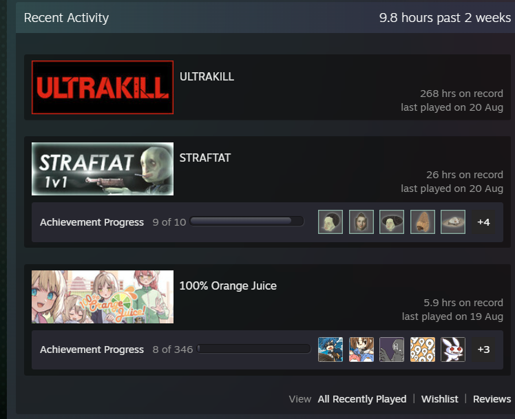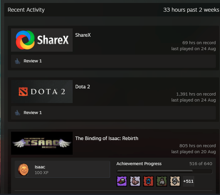 Штош. Осмотр стимов ИТТ на этой неделе завершился ожидаемо. Изменения в нашем рационе не наблюдается. Дока 2 + играем за лысого пиздюка + любим делать скриншотики. Годнота встречается только у второго индивида, и то только потому что было поиграно вместе со мной. Было бы без меня - было бы признано калом.
