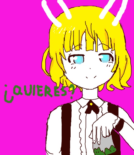 > В каком месте? Ну, ты начал реквестики выполнять же. Ножку вот дорисовал... А так, она немного напоминает Конату и у неё есть гетерохромия + отсылка на тему с персонажем из тохи, про которую ты говорил.