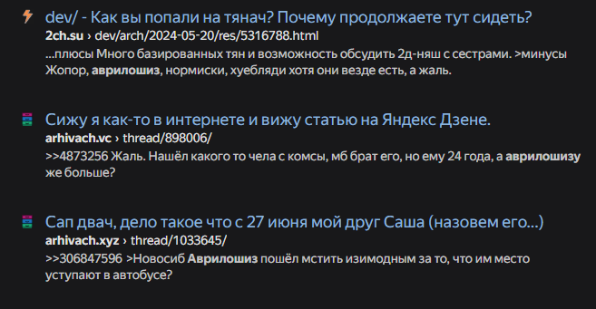 она полгода назад тут Сеню доёбывала что он набрал какую-то банду зумеров её на улице преследовать и травить, хотя по идее там какие-то мимокроки ходили и ей виделись сталерами травителями.