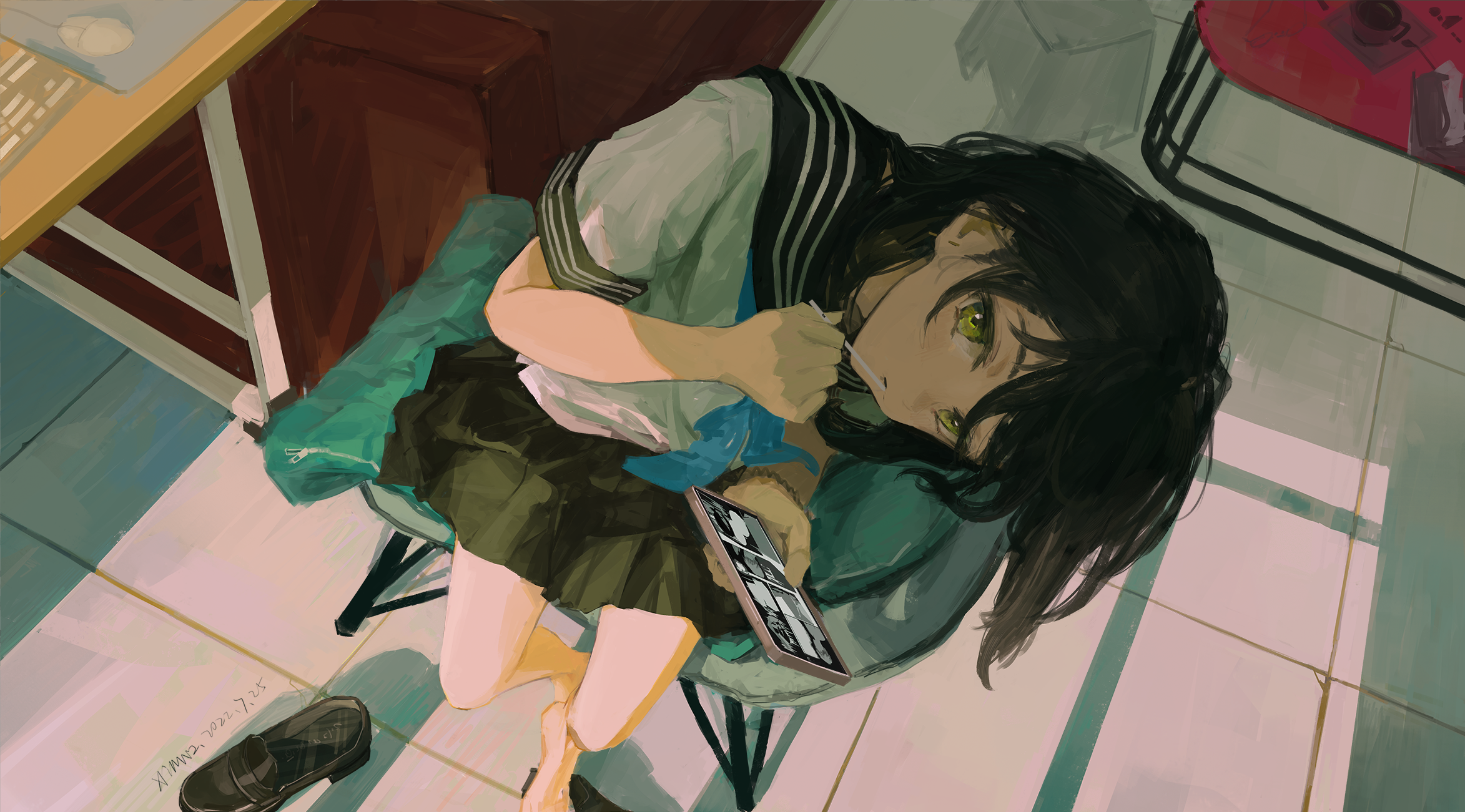 Вскоре стальное чудовище ожило. Грохот двигателя потряс воздух, а из выхлопной трубы повалил едкий дым. Внутри было тесно, шумно и душно. Широко, исполняя роль командира экипажа, смотрела в перископ. Ару, наводчица, сжала рукояти управления. Харука, заряжающая, с ужасом осознала, что снаряды весили почти столько же, сколько она сама. А Мутсуки... Мутсуки просто мечтала, чтобы это поскорее закончилось.