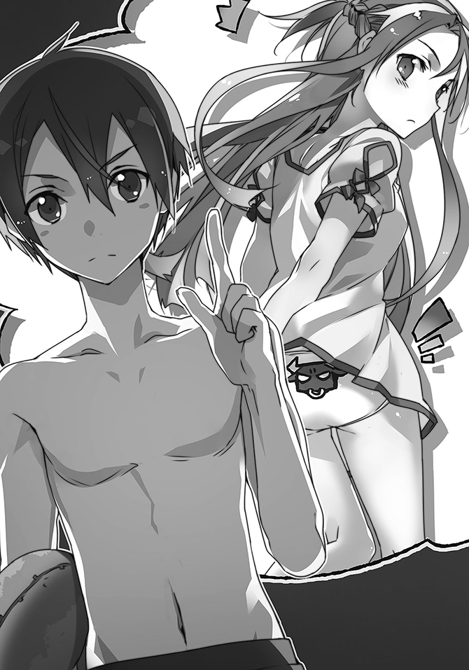 ТО его жена Асуна смущается, когда она чуть открытее оденется, чем раньше, а больше ни-ни не покажу, но при этом жестко его ревнует к другим, ХОТЯ у них был блять секс по ранобэ и она типа, типа его "жена" как бы
