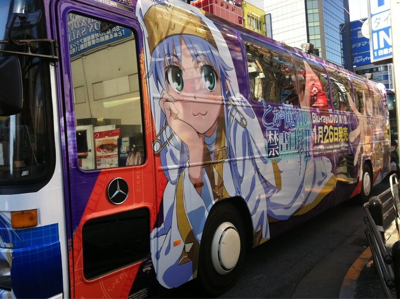 Что маскоты не имеющие никакого отношения к аниме вообще и раскрашенный рекламой дисков с аниме автобус - это свидетельства того, что гиковское аниме входит в круг интересов многих японцев?