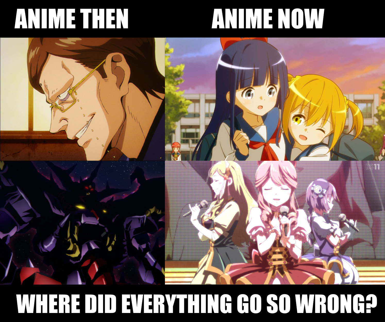 Поэтому с аниме всё в порядке. Ну а у носителей языка, на которое написаны все посты в данном треде - просто да, вот такой локальный культурный нюанс грустить на пустом месте, т.ч. в ход идёт изобретение таких вот ебанутых тезисов, которые можно увидеть в каждой простыне выше по поводу того, почему же развитие и прогресс аниме - это плохо. Всем же хочется почувствовать себя олдами и нитакусиками вместо того, чтобы наслаждаться искусством - пикрил.