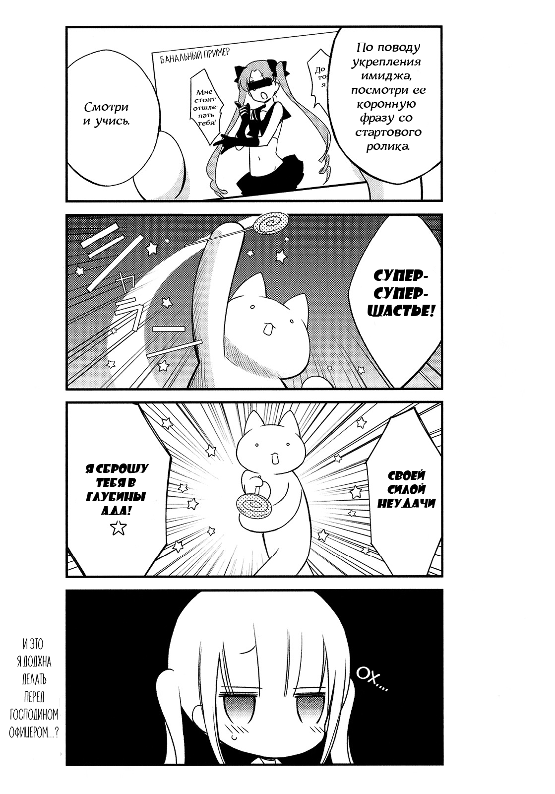 - О Читолорд, я рада, когда ты мне вдуваешь, Пусть ты злодей и лишь с читами побеждаешь! Лишь ты смог меня от одиночества избавить, Удовлетворить, на гедонизма путь наставить! Тебе ключи от портала времени вручаю, Входить в него больше не запрещаю! Пред тобой я жезл и сиськи преклоняю! А Иннерам хочу признаться со стыдобой, Что вредной я была от недоеба!