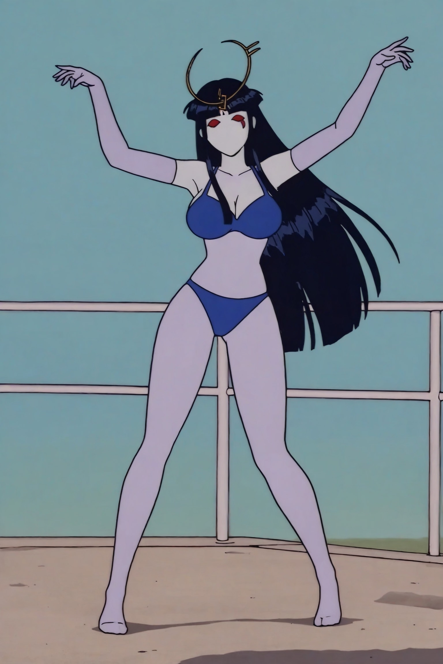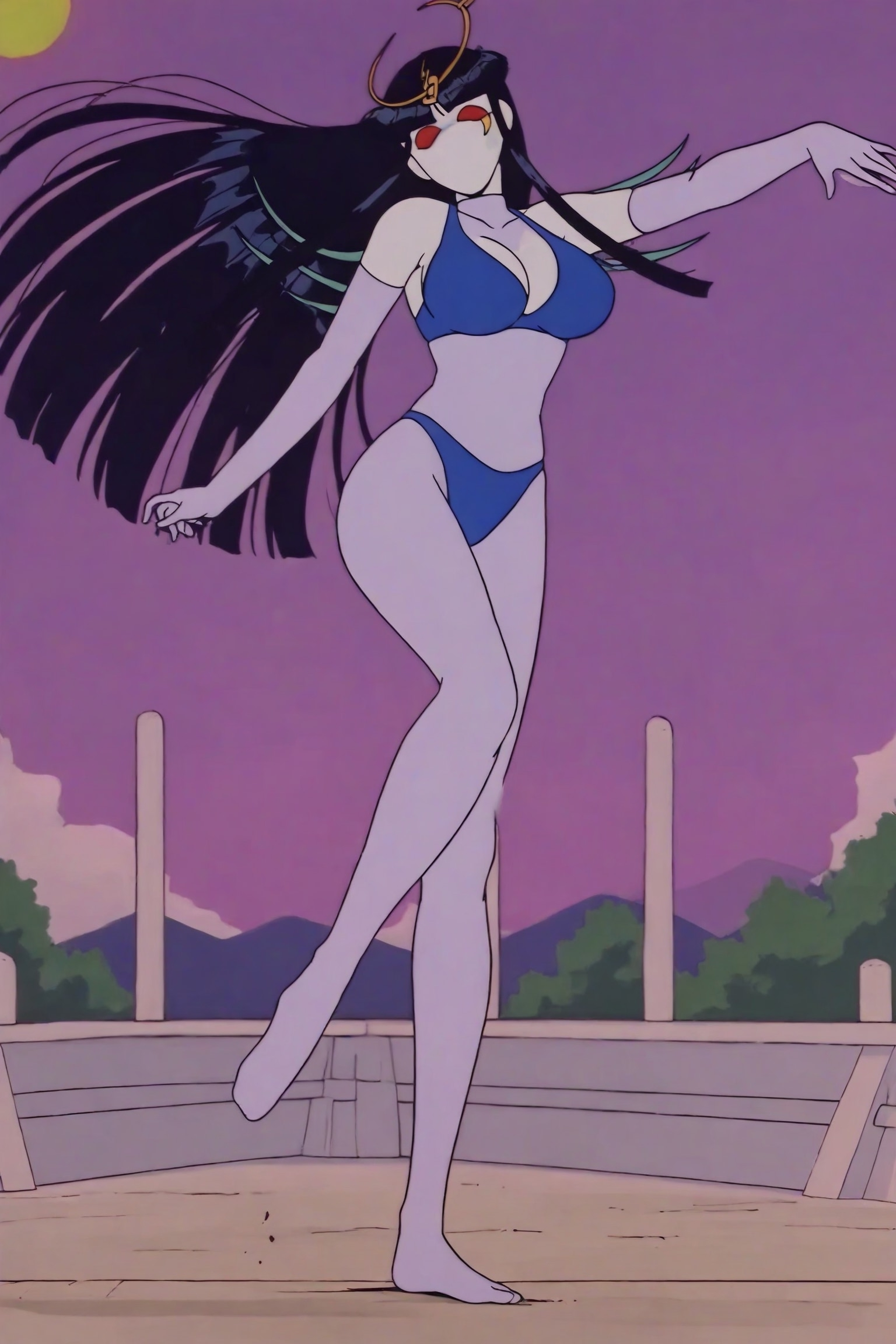 >>7962693 Не надо. >>7961203 Нарисуй картинку в стиле аниме. По берёзовому лесу, днём, едут вместе на одной лошади три человека. Лошадь белая, с бирюзовой гривой. Слева сидит молодая девушка. Она сидит боком к движению лошади, т.е. обе ноги её свешаны в одну сторону, она обращена лицом к нам. Волосы чёрные, прямые, длиной ниже пояса, чёлка средней длины. Она одета в форму японской школьницы белого цвета, но с красной юбкой и красными оборками. Одна рука её закинута назад за себя, другой рукой она держит за плечо следующего седока - мужчину. Обута она в чёрные туфли на высоком каблуке. Посередине сидит молодой мужчина в белой, маскарадной маске, в чёрном фраке, в черных брюках и ботинках и в чёрном, высоком цилиндре-шляпе. Он сидит нормально по ходу движения лошади, как наездник. Смотрит в нашу сторону, улыбается. Одну руку его не видно так как она за ним, другой рукой он держит поводья лошади. Перед ним сидит третий наездник. Третий наездник - ещё одна девушка, она сидит боком, так же как и первая девушка, лицом к нам. Она одета в белую форму японской школьницы, но фасон немного отличается от первой девушки. На груди у неё бант красного цвета. Также на ней надеты красные сапоги по колено с высоким каблуком. Юбка и оборки синего цвета. Волосы длинные, ниже пояса, ярко жёлтого цвета, разделены на две большие, прямые пряди по бокам. Так же в причёске есть два заплетённых небольших шарика из волос сверху по бокам головы, пряди как раз идут от них. Она как и первая девушка прижимается к молодому человеку. Обе девушки повёрнуты лицом на нас, но взгляд их обращён на молодого человека посередине. В глазах их видно сердечки, они смеются и полны любви.