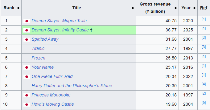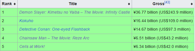 >чейнсо мена не видим. Потому что 2025 не закончился, дурик. И потому официальных данных про сборы от японской ассоциации кинопродюсеров еще нету.