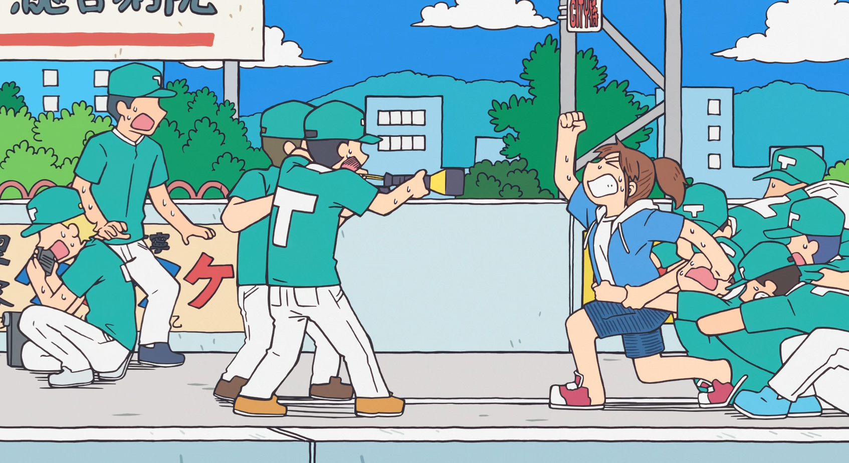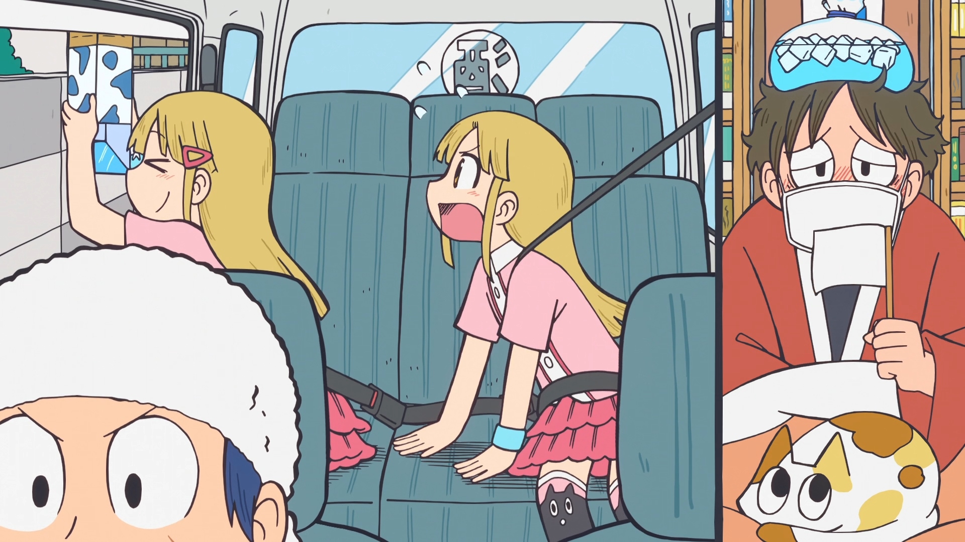 Пацан с батей - тут всё понятно, у бати очень интересные хобби. Сам лично больше всего ожидаю от пары школьниц, занимающихся обороной города - старшеклассницы это всегда топ. Потом ещё зацепила аутичная аутистка, которая в соло способна себя облапать по всем карманам и явно победитель всех тредов "что у вас в сумке". В соло заебошить такой экшон - это нужен талант. Это я хз что за жанр, это какой-то тактильный АСМР. Из остальных - две взрослые бабищи - нууу мейби. Про мангаку с редактором я вообще не вкурил, это какой-то локальный мангашный прикол с ментальным баттлом. Но посмотрим, что там будет дальше. Надеюсь, они там не будут все 13 эпизодов сидеть и давить из себя личинку.