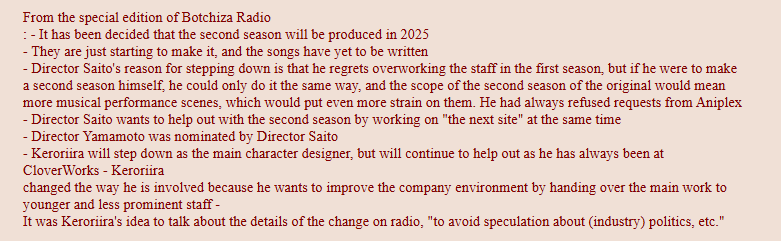 Второй сезон будет говном вне зависимости от режиссёра. Всё таки боче больше не нужно превозмогать свою шизу. Ей осталось только на хуй чеда прыгнуть и станет самой обычной нормиской.