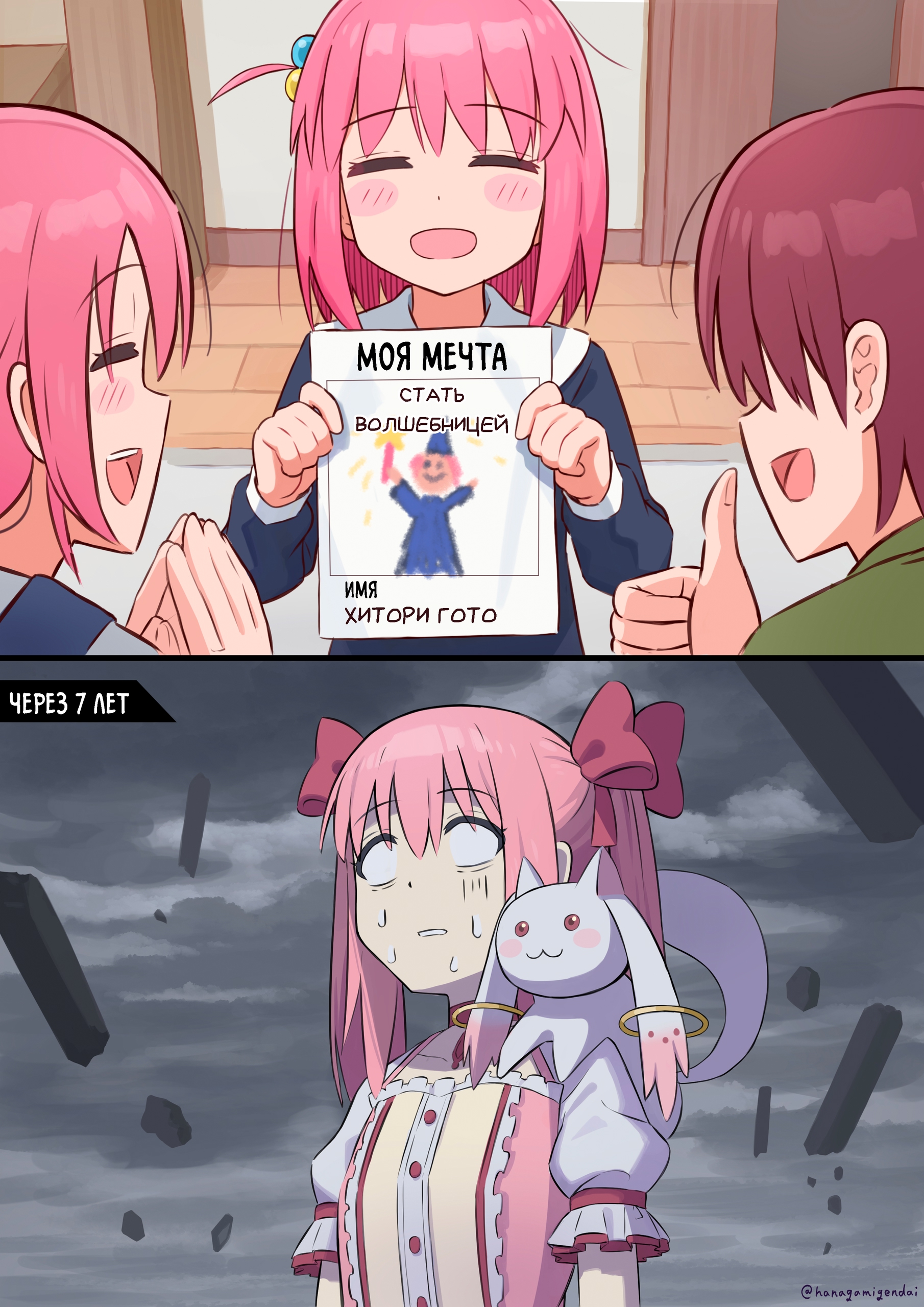 Да чет насмотрелся других аниме про группы и уважение к боччи просто растерялось. 10 пока не убрал в шики потому что нравится Ре и бочка неплохо проблему интровертов раскрывает для нормисов (но к этому еще вернемся), но чет да такое. Драмы толком нет, просто парад гэгов который взлетел внезапно и сейчас держится на кумерах и юрифагах. Музыка и близко не важная часть аниме Узнал допустим про такого перса как Рокка ака Рок и это литерали наша бочка трясучка которая охуеть гениально играет. Не хочу, конечно, сказать что кто-то что-то спиздел. Манга по бочке вышла в году 17, а аниме лет через 5. Готовилось анимцо по ощущениям качества (нищего) ну может года два-три. За все 5 лет 40 глав вышло (или столько как минимум перевели пока что у нас). Рокка в бандори появилась в году 19 во втором сезоне, но это без учета когда именно придумали и работали над ней (а там идея сразу на 2 сезона с ее участием). Сомневаюсь что пиздели что-то у боччи, так как за год допустим там глав вышло бы недостаточно чтобы картину о персе сформировать. Короче очевидно что есть прототип для таких персов как бочи, даже аниме есть такое про интровертку бочи Marumaru Seikatsu, так что даже тут ничего удивительного бочка не принесла. Наоборот даже в аниме две таких бочки, которые через музыку перемогают. Вторую Кикури зовут, может знаете такую