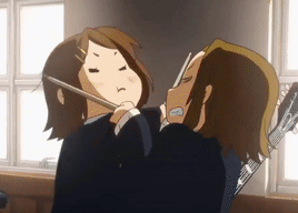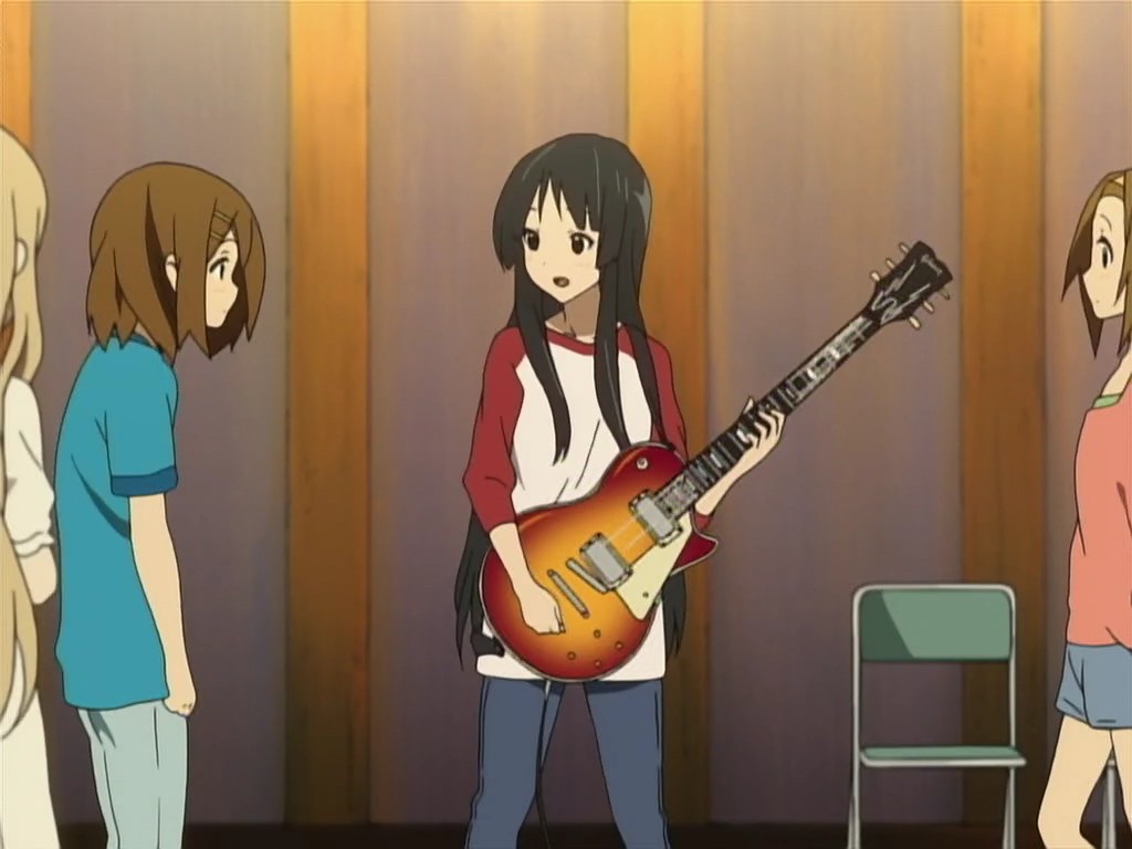 Вот за что люблю Кейон (помимо прочего), так это за то, что не смотря на наличие тропа "начинающая и опытная гитаристка", в песнях партии Юи и Адзусы более-менее одного уровня. Есть даже песни, где у каждой есть соло. Ещё любопытный момент: Юи старше, но за гитару взялась позже. Получается, в жизни у них, как и у всех отношения "сэмпай-кохай", но плане гитары, фактически, наоборот.
