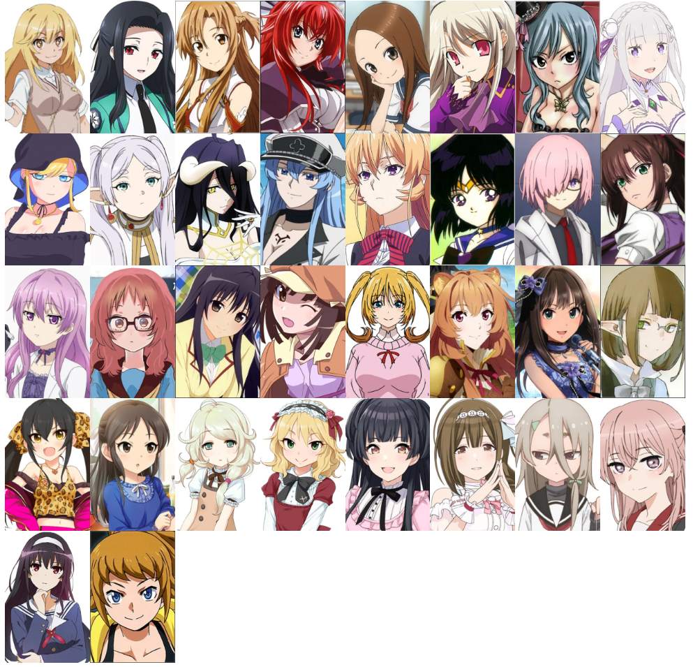 >>7913112 Можно самому как-то креативно подойти, разделение придумать. Например в самый нижний ряд поставить всех белобрысых персонажей, или просто где на портретах белого цвета много. Ряд будет выделяться, выглядеть как своего рода разделительная линия. А ниже уже тянок пихать. На практике может хуйня получится, надо смотреть.