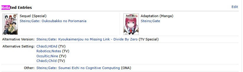 >>7920554 ясно, на альтернативную версию сначала нажать нужно, только потом видно будет s;g 0. При этом если нажимать на продолжение (Sequel), то оно не приведёт к продолжению. Пиздец залупная система >>7920555 дядя Вова попросит вычислить всех пользователей добавивших к себе в список просмотренных аниме тайтлы с нетрадиционными ценностями и меня посадят