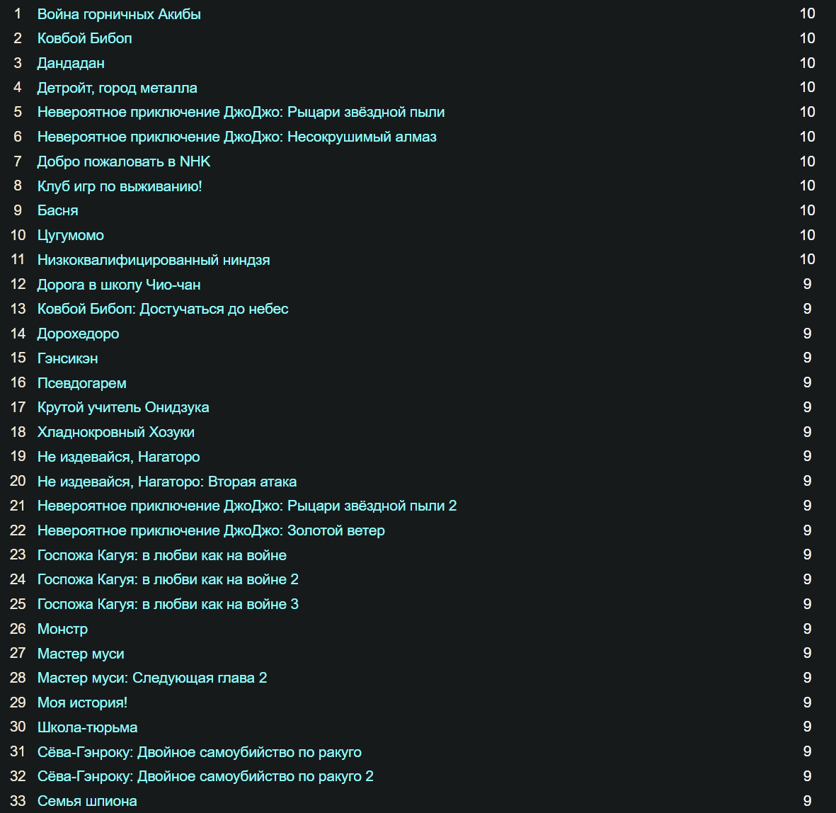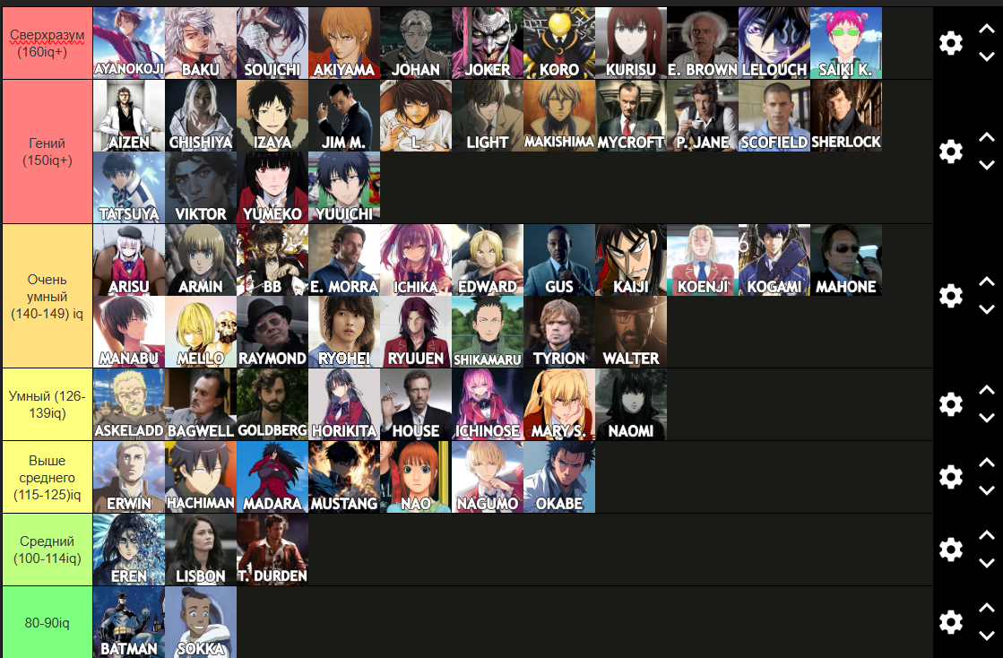 Есть альтернативный тир-листы, или приватные чьи-то? Хочу вот начать смотреть анимы, просмотрел несколько тайтлов, но топ тира состоит из того что мне неинтересно. Начал титанов смотреть, там поведение персонажей просто дебильное, за что этому оценку ставят, за 20 секунд экшен сцен драк и боёв? Или за сцены с кровякой и расчленёнкой? Попробовал героя щита, меня этот сценарий с абсурдно зловредными персонажами мягко говоря не впечатлил. Открыл сололевелинг и это бля полный трешак, какие нахуй 8 баллов. Я боюсь что весь топ аниме является такой блевотой, хотя онидзука и врата штейна норм зашли. Длинные не хочу смотреть, типа блича, наруты и подобного, по 500 серий покуш покак.