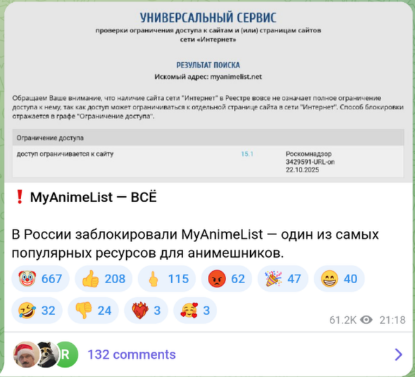 Справедливости ради, давно уже не замечаю никаких блокировок, потому что все открываю с ВПН. С чистого интернета ты в 2025 году можешь разве что на гойуслуги, вкудахте, одноклассники и сосач зайти без проблем. Всё трясусь когда белые списки введут в некоторых регионах уже ввели и впны станут нерабочими. Вот тогда и наступит полный мрак. А пока терпим потихоньку...