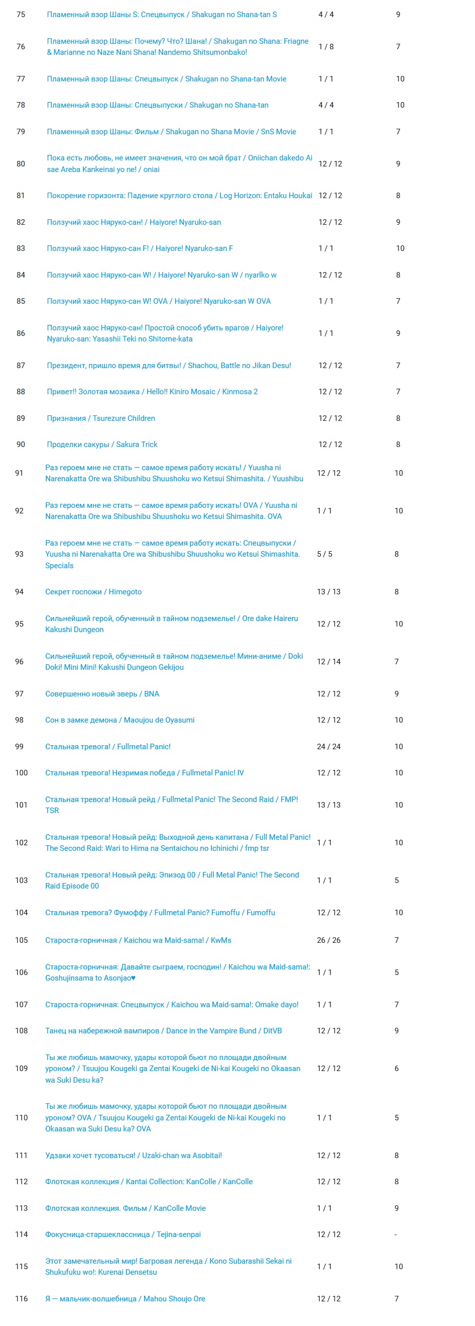 >>7963394 >>7963394 >Много милых девочек. Это хорошо Всё верно, не ради же брутальных мальчиков смотреть. >сдается мне это отнюдь не 1/10 Ну может не 1/10, но рядом. У меня в этом списке примерно половина от общего объёма просмотренного. И стараюсь не смотреть то что мне может не понравится.