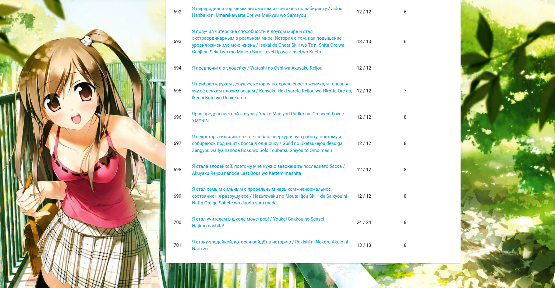 >>7913110 Вот накидал кое чего. Но тут тяночки именно в гарем, без просто милых лолек типа Ренге или Чино-тян или каких то крутых персонажей типа Алины Грей, но которые именно как женщины неоч. Еще существует ряд очень красивых тяночек типа Кагуи, Тацумаки, Чидзуру и Коми, но мне сами тайтлы не нравятся и тяночки как персонажи в целом очевидно тоже, только внешность. >>7913119 Так там еще нельзя перетаскивать персонажей, они идут в порядке добавления. >>7913117 Реально забыл.