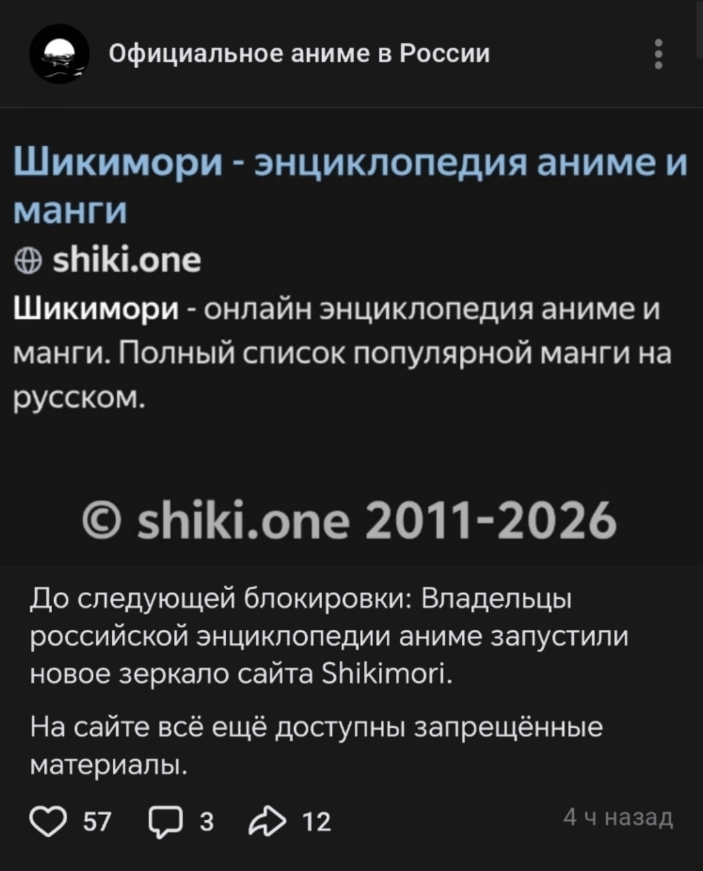 Ну все, теперь вопрос времени когда тайтлы с шикиморья начнут активно выпиливать. Пока только хентаем и на его грани ограничились, но скорее всего и до юрислайсиков дойдут, когда более пристально обратят внимание на содержание сайта.