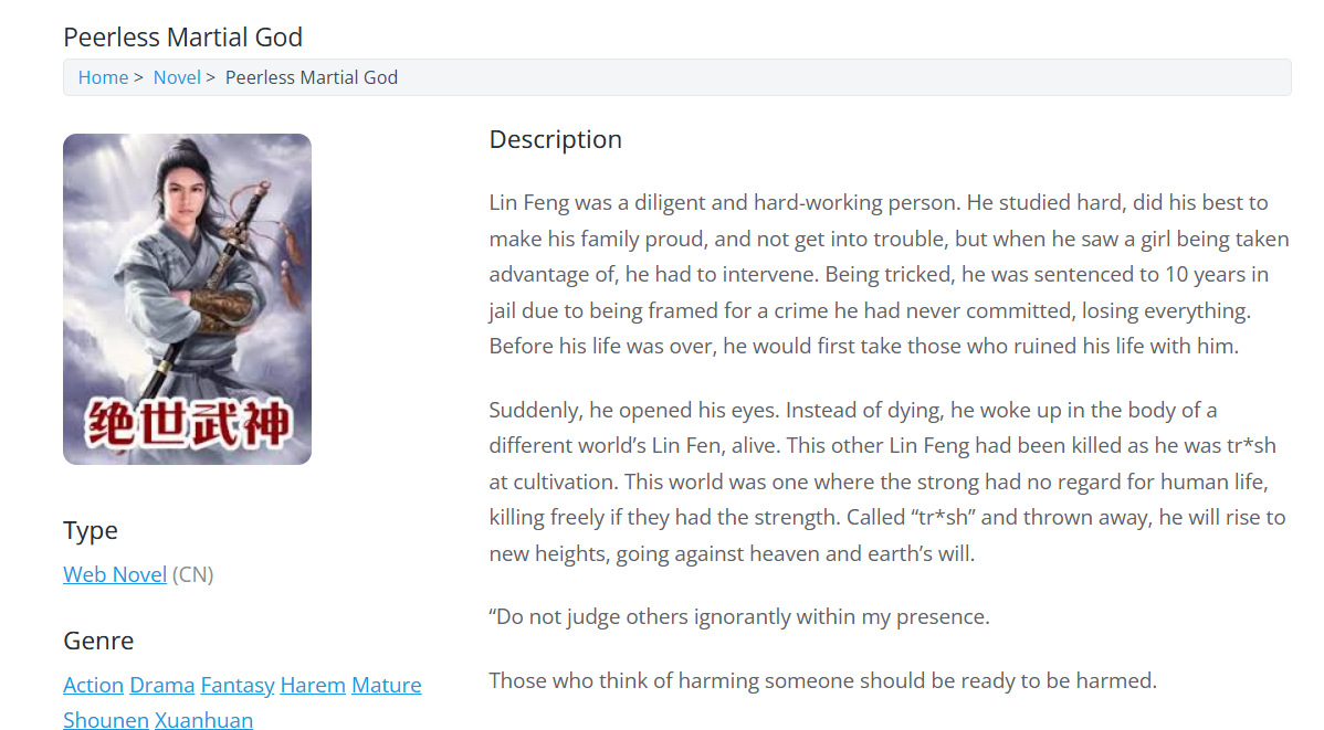Кто хочет концентрированную китайщину в вакууме, могу посоветовать Практикуя Ци Сто Тысяч Лет. С героем имбой. Как Ван Панч Мен, только если гг Ван Панч Мена занимался какой-то хуетой, то тут гг занимается тем чем и должен заниматься тот, кто способен уничтожить любого с одного удара.
