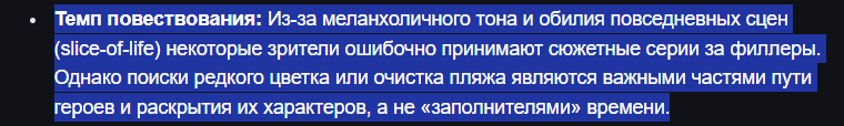 >>7962467 На падения похуй только в комедийных и около комедийных тайтлах и это адекватно т.к. в комедийном тайтле много условностей. Во Фрирен же большое внимание уделяется логике мира, логике магии, причинно следственным связям т.е. зрителя тут уже приучили, что условностей тут нет, а если произошло что-то непонятное, то оно должно быть объяснено как минимум с позиции внутренней логики мира. Так что дешевые оправдашки про аниме-клише тут не канают. Это либо объяснят либо это косяк и халтура.