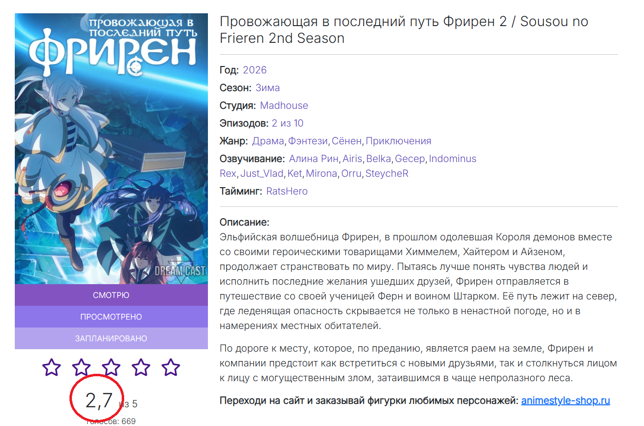 Жанр роадмуви, конечно, спасён. Но всё же маловато событий по одной серии смотреть. Кто-то в твиттере запостил плачущую Фрирен и я до четвёртой недотерпел.