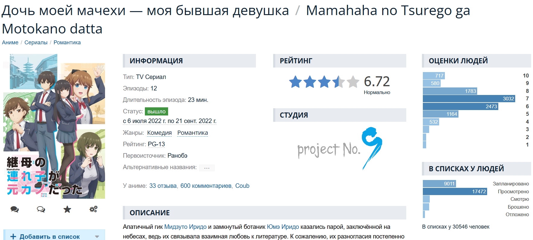 >>7965926 >может устроить перепросмотр? Каловый титул. Ни рома, ни кома нет. Только слайсик про то, как бывшие, расставшиеся из-за хуйни, оказались сводными братом и сестрой и живут под одной крышей. Там даже вроде в манге еще финала нет. Та еще санта барбара