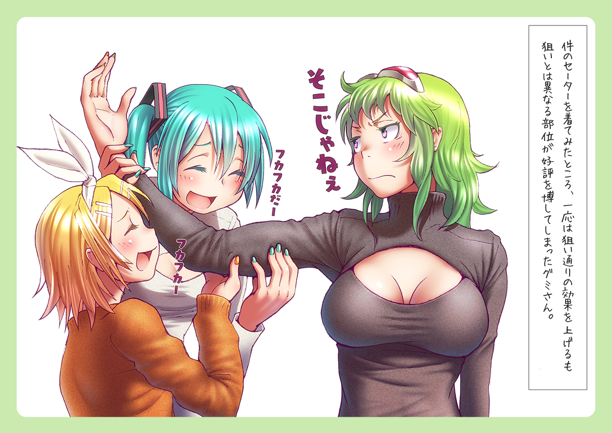 >>86665 >Не люблю этого автора. Все вокалоиды, коих он рисовал, вызывали у меня тошноту. Другие мои пикчи, на которых были и Мику, и Гуми, и "заняшьтесь", как мне показалось, вызовут у тебя приступ, потому я пошёл на меньшее зло. Давай ка эксперимент. Как тебе второй пик?