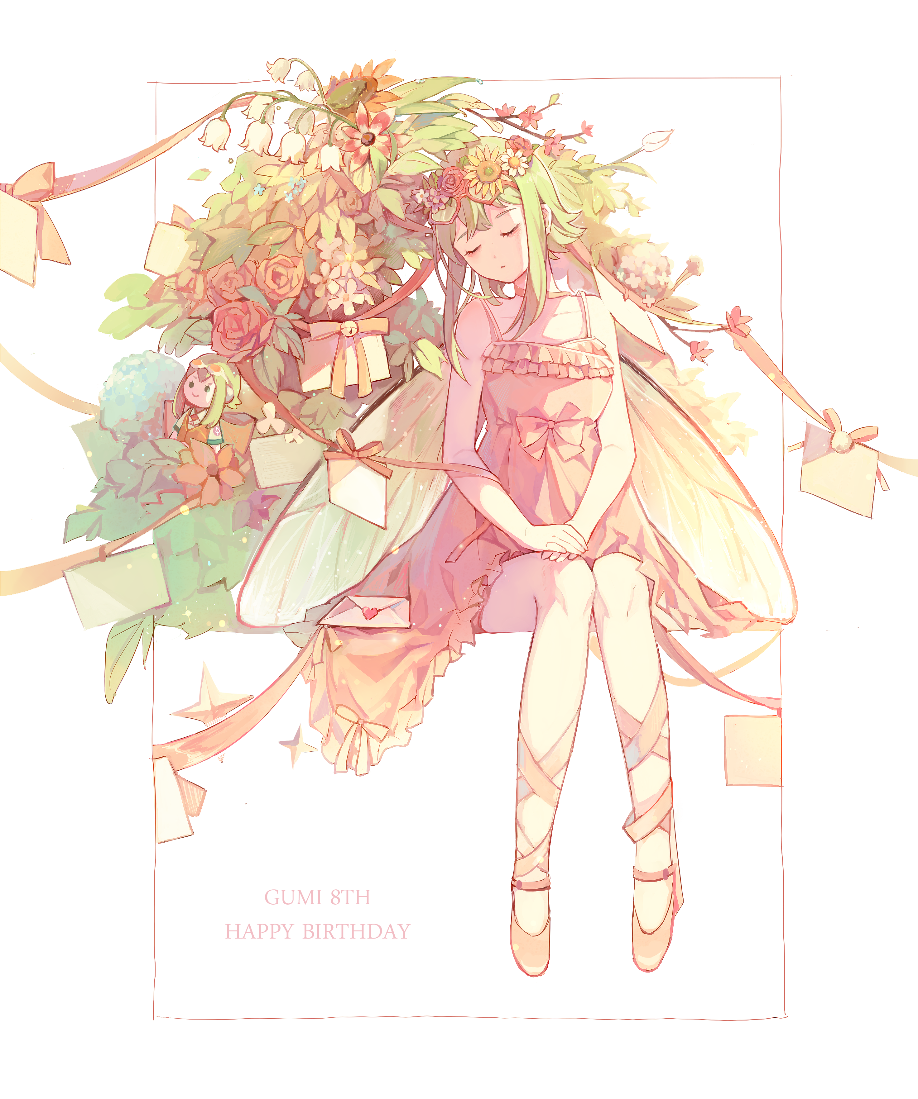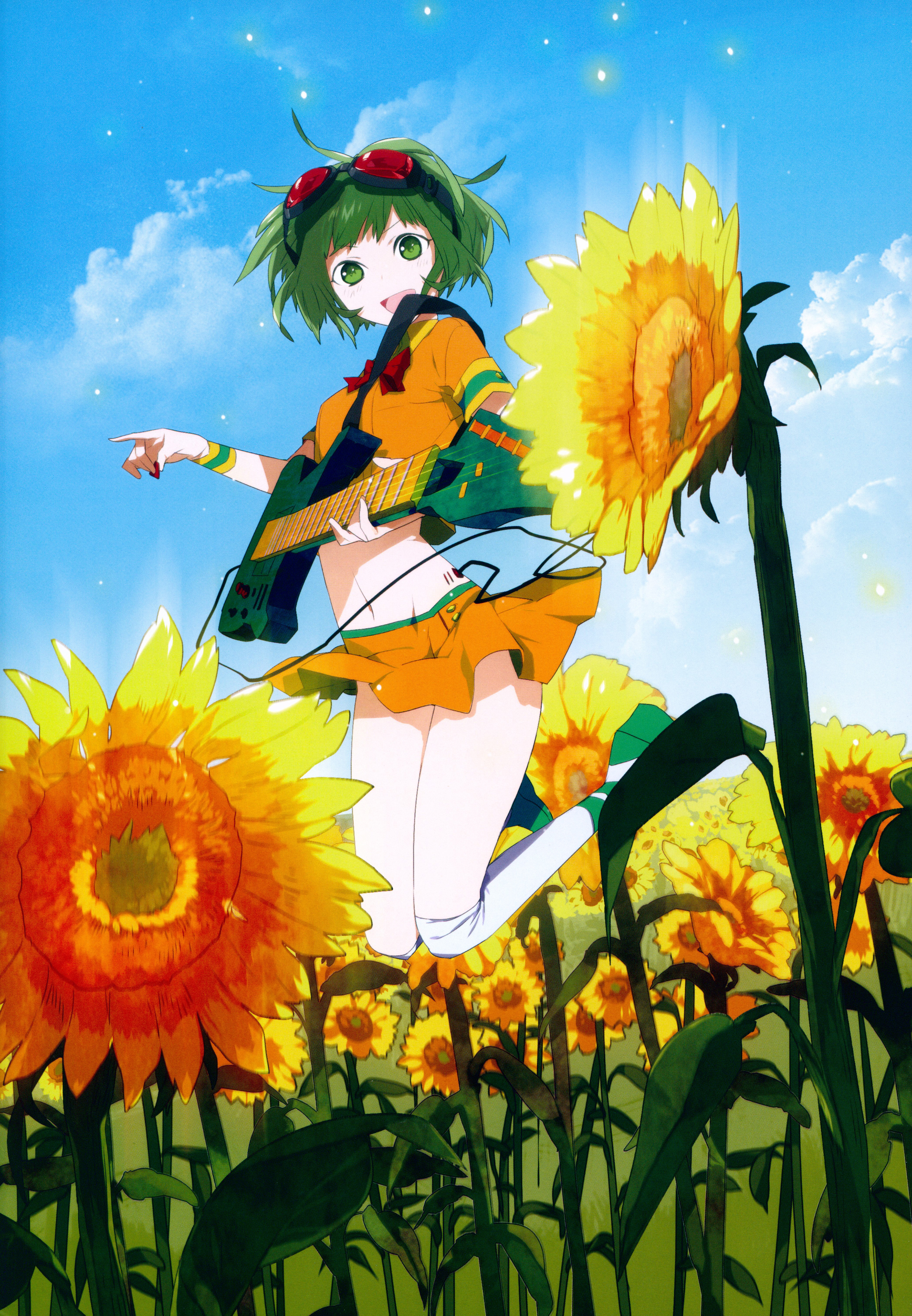 Пошёл читать про подсолнухи и вот что нашёл: Подсолнух - Этот солнечный цветок – главный символ оптимизма, веселья и благополучия. На языке цветов букет подсолнухов, подаренный девушке, означает: «Ты - чудо!», «Я никогда не встречал такой, как ты», «Я горжусь тем, что ты со мной». Подсолнухи — самые солнечные цветы. Букет или композиция из подсолнухов - яркий, оригинальный и незабываемый подарок. Дарить подсолнухи рекомендуется людям творческим и неординарным. Остановите свой выбор на букете подсолнухов, если Ваша цель улучшить настроение, извиниться или произвести положительно впечатление. Гуми очень рада. А ещё она с крыльями, да