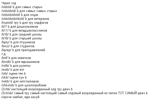 >O.L.D.F.A.G Как это вообще объяснить можно? Какому дебилу в голову такой принцип дифференциации пришёл вообще? Макак ебанутый совсем? Запилите ещё T.R.O.L.L., B.Y.D.L.O. и S.C.H.O.O.L.K.I.D. и все доски можно закрывать, окромя этих четырёх.