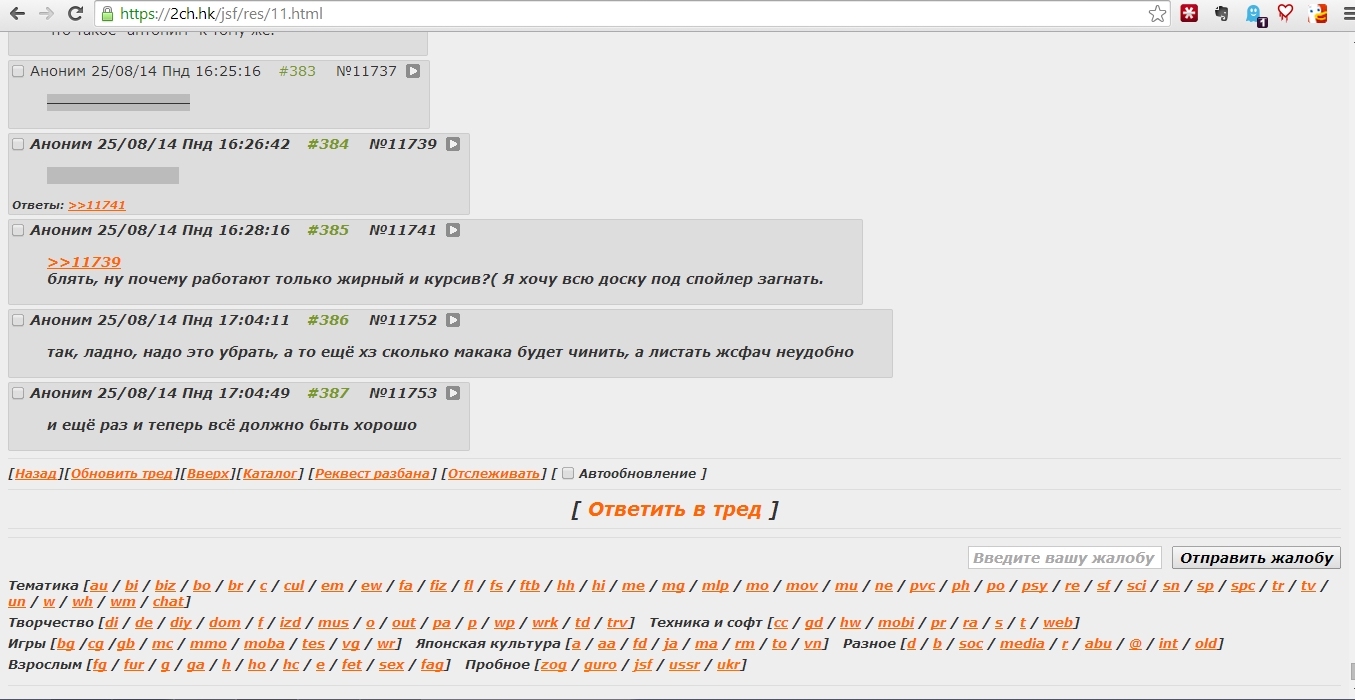 И сделай что бы ответ на твой пост был >>номер поста (Вы/Ты/Тебе) как на 4chan. А скрывающую форму постинга под каждым постом так и не вернул, плавающая неудобна.