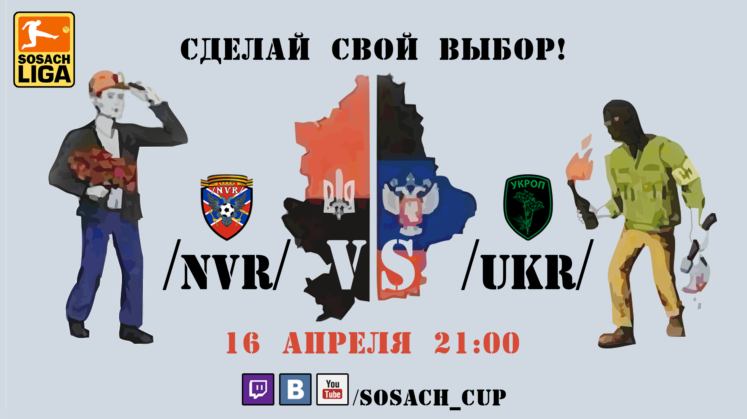 Шановне товариство! Цієї суботи нас чекає продовження одвічної боротьби України з кацапами. Сєпари приїдуть у гості до Бандери й компанії та спробують якось змінити нинішню ситуацію. Цієї суботи о 21:00 за Київським часом на каналі https://www.twitch.tv/sosach_cup