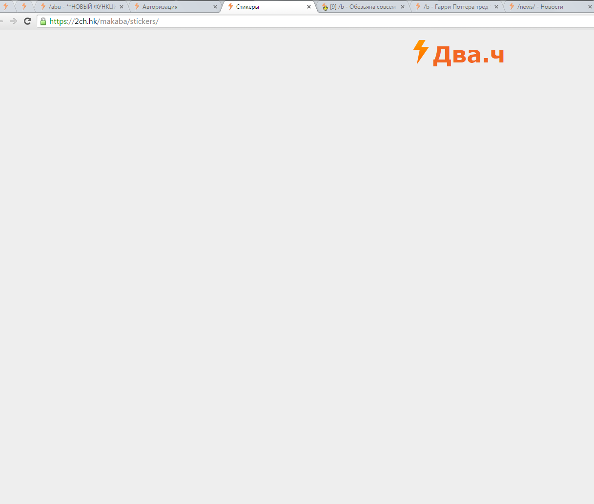 Не грузится страница со стикерами. Появляется просто пустая белая страница с надписью "Двач", а стикерпаки не показываются http://puu.sh/siZG8/6dc05646e6.png
