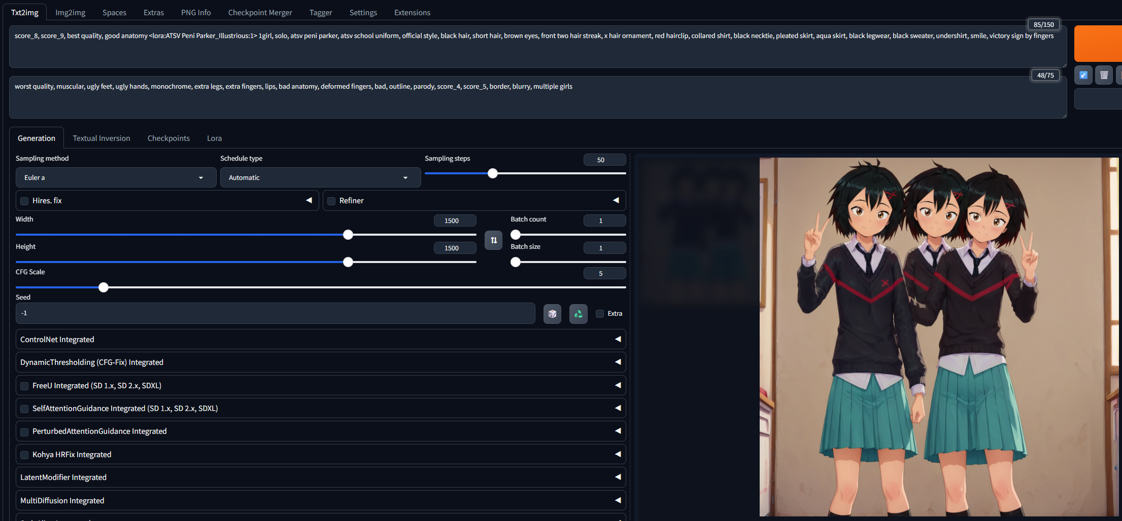 >>1419530 Выше вон про хайресфикс было. Один не работает, с форджа работает. Плюс несколько других расширений, которыми я пользовался время от времени для нескольких специфических задач. Но для генерации картинок они не нужны, так что маловероятно, что кто-то с подобным столкнется.