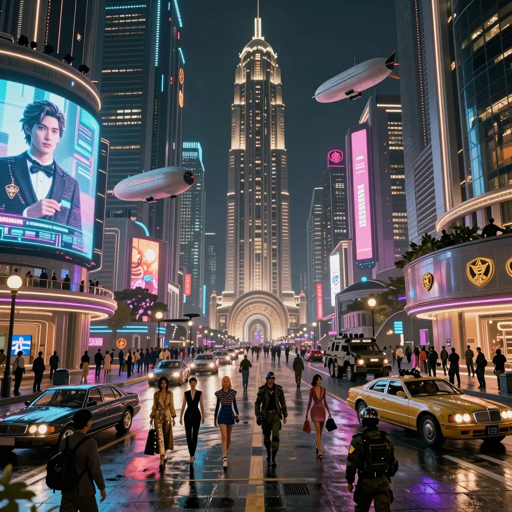 >>1443322 Да, беру промпты у ллмки > A highly detailed cyberpunk future cityscape at night with a crowd of people living in luxury under a strict authoritarian regime. Neon lights reflecting off wet streets, advanced technology with holographic advertisements, people wearing high-tech fashion and expensive accessories. Authoritarian symbols on buildings, military presence with armored vehicles patrolling. Luxury cars and airships hovering above, opulent skyscrapers with exclusive clubs and casinos. Sharp contrast between wealth and control, cinematic lighting, 8k, photorealistic style Сначала дура проигнорировала часть промпта, затем подменила азиатов на людей, после чего действительно нарисовала по теме. А рисованные изображения нейронка не любит > happy old man