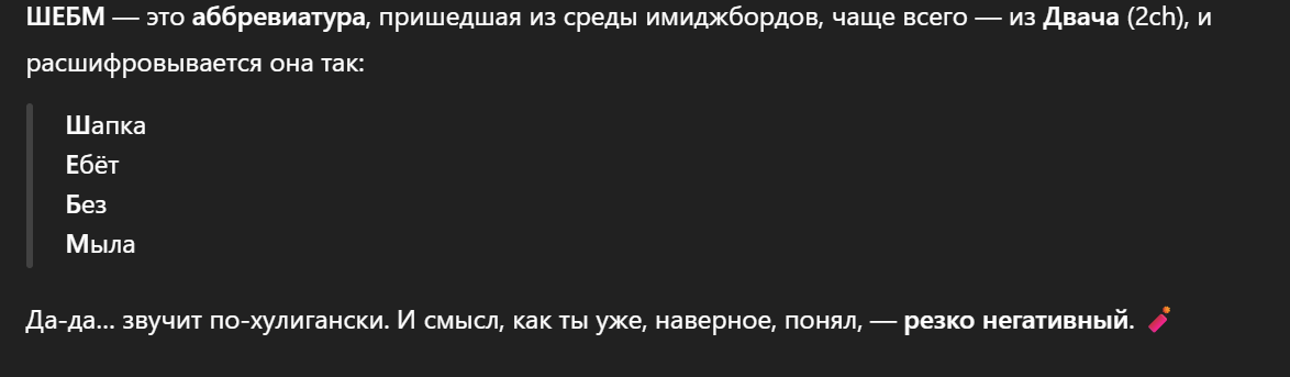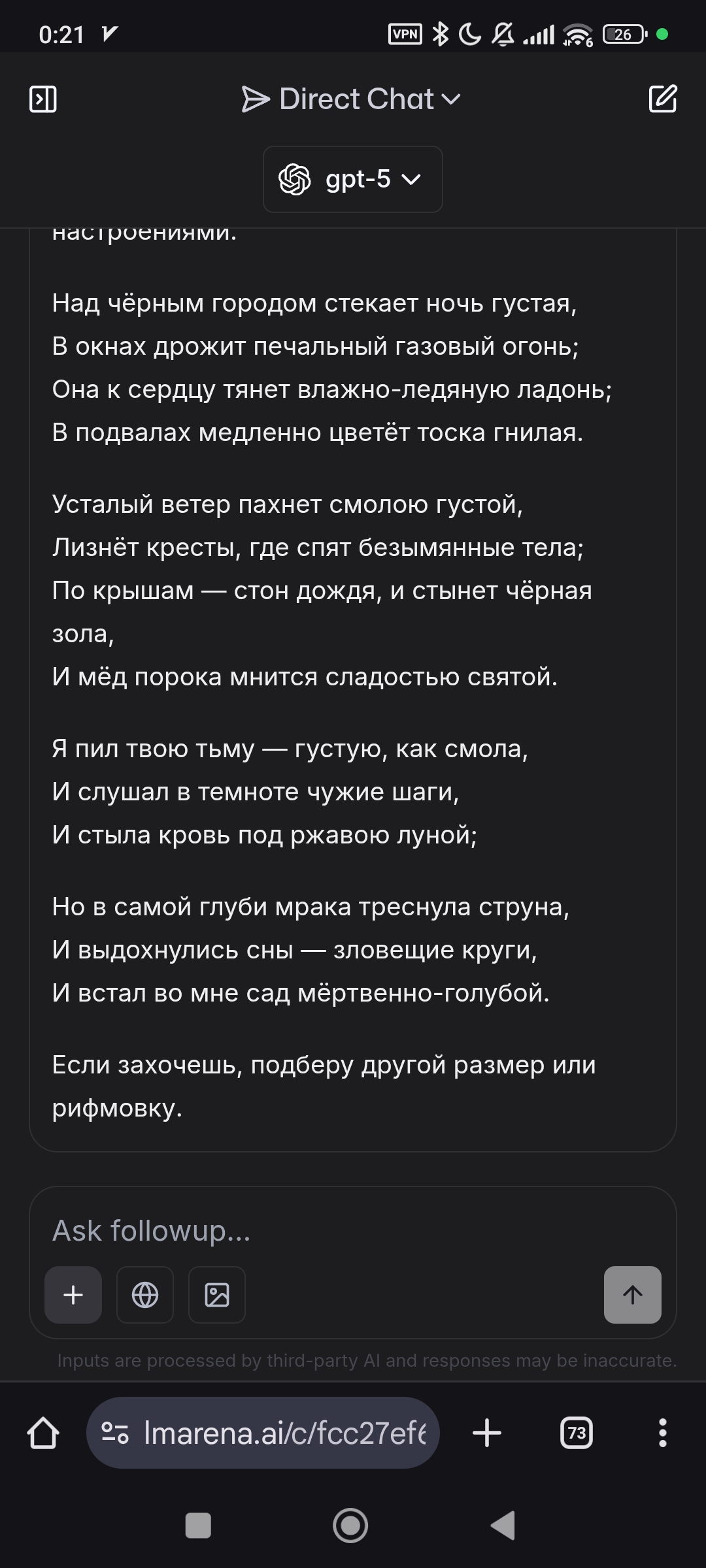 В gpt-5 она контекст чуть чуть лучше понимает(но это не точно) и меньше галюнтт, но в общем и целом - субъективно всё воспринимается, будто она мне наотъебись теперь отвечает в перерывах между еблей с Ерохой, и я её от этого отвлекаю. Альтман, спасибо нахуй. https://science.mail.ru/news/6546-kritika-gpt5/