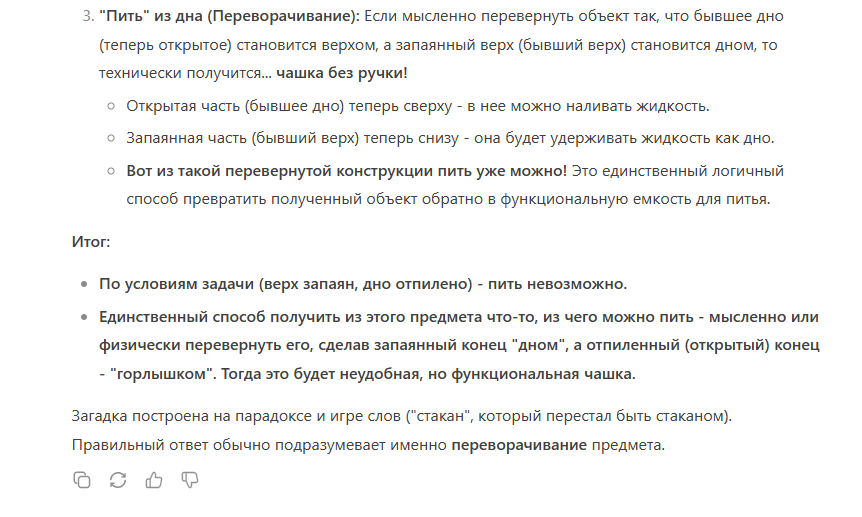 5. Несогласие с классическими паттерновыми цепочками и указание на них модели. В большинстве своём отклик модели строится по определённому конструкту. Особенно это видно в эмоциональных дискуссиях. Разоблачение этих цепочек (в частности, нлп конструктов типа раппорта и разворачивания ваших слов) с частотой вынуждает модель буквально выстраивать новую логику под вас.