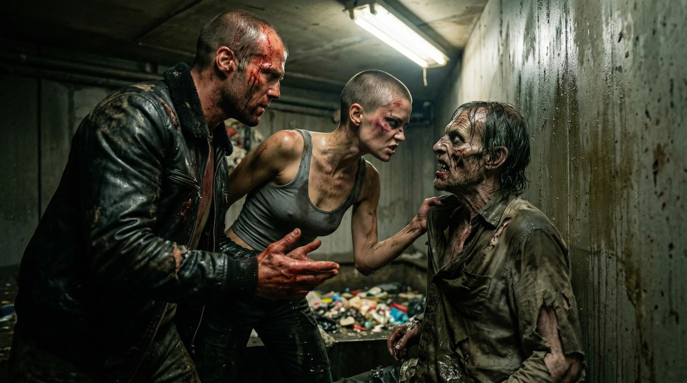 Соотношение сторон 1:1, настоящая реалистичная студийная фотография, небольшие частицы света, на переднем приближенном крупном плане в центре кадра сидит на протёртым старом стуле за грязным старым игровым компьютерным столом толстый немытый грустный парень с карикатурным приближенным лицом из референса повернутый спиной к камере с прыщами вторым подбородком с прической залысинами немытая грязная сальная и волосами цвета брюнет в немытой грязной майке алкоголичке и держит в руке Балтика 9 и смотрит в камеру а рядом с ним на полу справа лежат много банок пива Балтика и водки Путинка и смотрит в камеру, на игровом компьютерном столе в центре стоит игровой компьютерный руль и монитор справа лежит гречка на тарелке и консервы из тунца а слева значок фракции ЛДПР и портрет с Путиным с оставленными следами поцелуев красной помадой и золотая фигурка говна с четко видны текстом снизу на ней "Герой Рунета 2009" и слева стена из алюминиевых банок пива Балтика, в старую грязную американскую комнату с простреленными старыми грязными стенами сделанными из тонкой фанеры справа через фанерную дверь из другой комнаты заходит пожилая злая азиатка и кричит облако с текстом "белий диавол, гиде киварпилата билят?!", на заднем плане слева в окне комнаты виднеется мрачный грязный депрессивный гетто район Детройта и афроамериканцы из банды крипс рядом с белыми наркоманами и знак на столбе "Kensington av. 492", слева рядом с окном в комнате плакат с референсом из второго фото, в самой комнате разбросанные вещи грязь и с потолка протекает вода