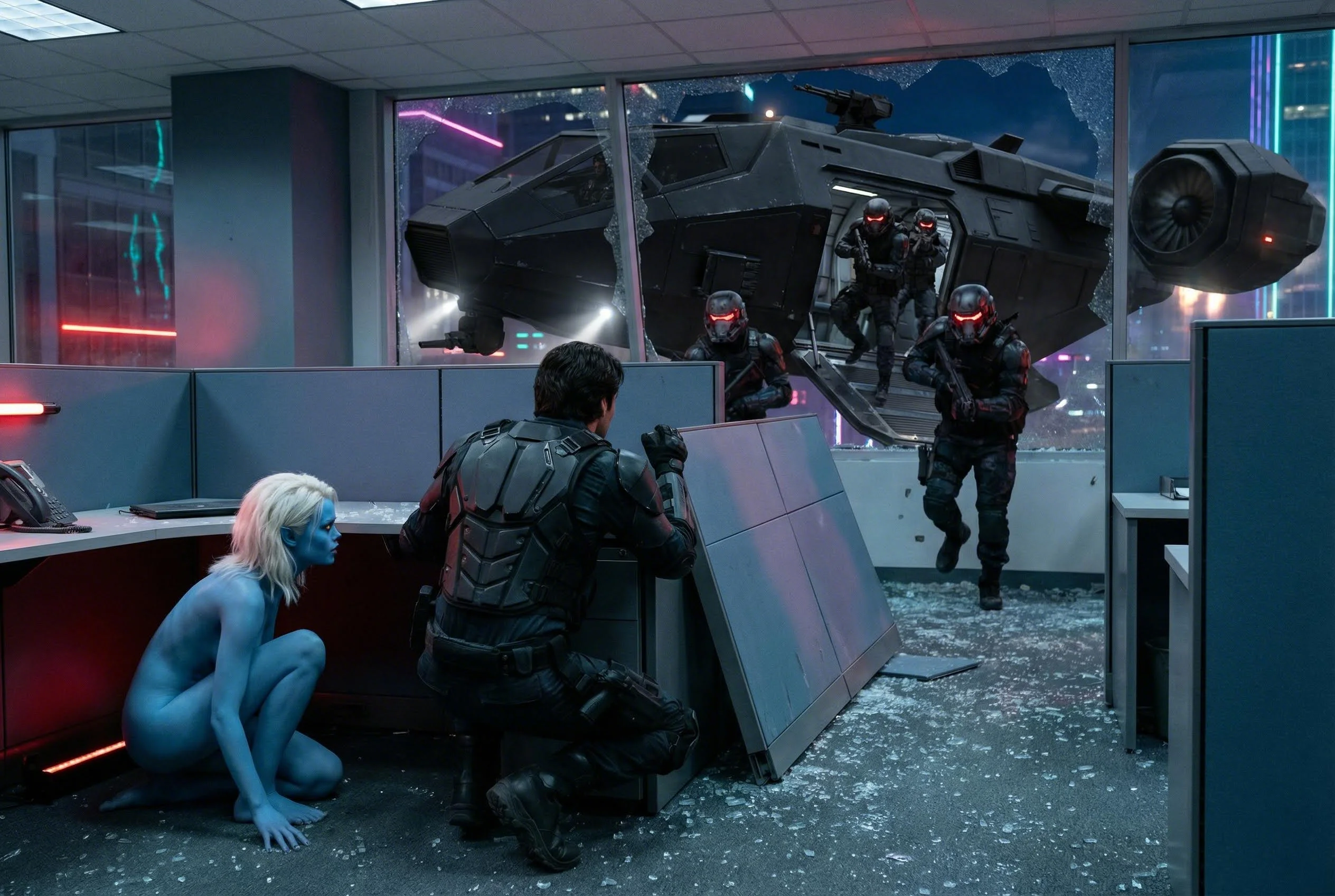 Сгенерируй комикс в 3 окна, два сверху, один большой снизу, он не должен быть слишком карикатурный, а как комиксы про Супермена или Бэтмена, по этому тексту: Руссикй Размер - Звёздный полицей [Куплет] Он летел и выбрал планету Сверил курс, направил ракету Двадцать пять минут до посадки Час осталось жить вам ребятки