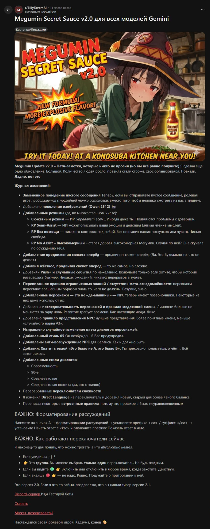 У меня другая проблема. Все модели добрые 😔. Мне нравится гемини 3, и клоды хорошие. Но я скучаю по стеклу...не могу заставить их играть стекло как мне надо. Слишком уступчивые. Нет газлайтинга, манипуляций и жести как в 2.5. но 2.5 слишком негативный. И этот слоп надоевший уже до ужаса... Щас пресеты все делают на экономию токенов, особенно с появлением тройки. А они точно не решают мою проблему