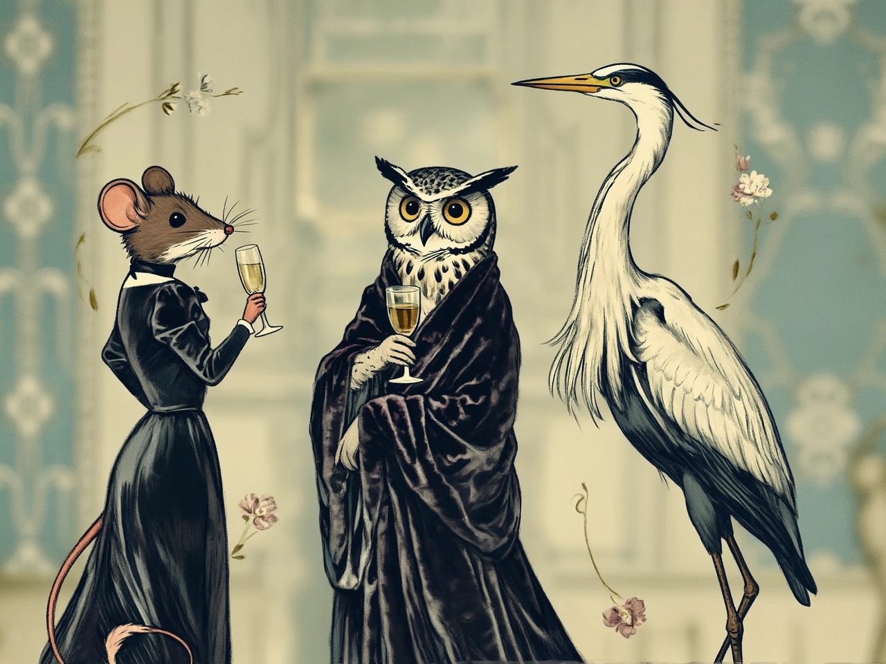 Technical Details: Highly detailed illustration, soft diffused lighting, volumetric light, intricate floral patterns, delicate facial features, detailed clothing. Emphasis on atmospheric perspective and depth of field. The artwork should be reminiscent of a vintage book illustration with a slight watercolor and pen-and-ink aesthetic. Style: Pre-Raphaelite, Art Nouveau, Fairy tale illustration. Artist inspiration: Arthur Rackham, Aubrey Beardsley. Medium: Watercolor, Pen & Ink, Antique Paper Texture. Mood: Ethereal, whimsical, enchanting.