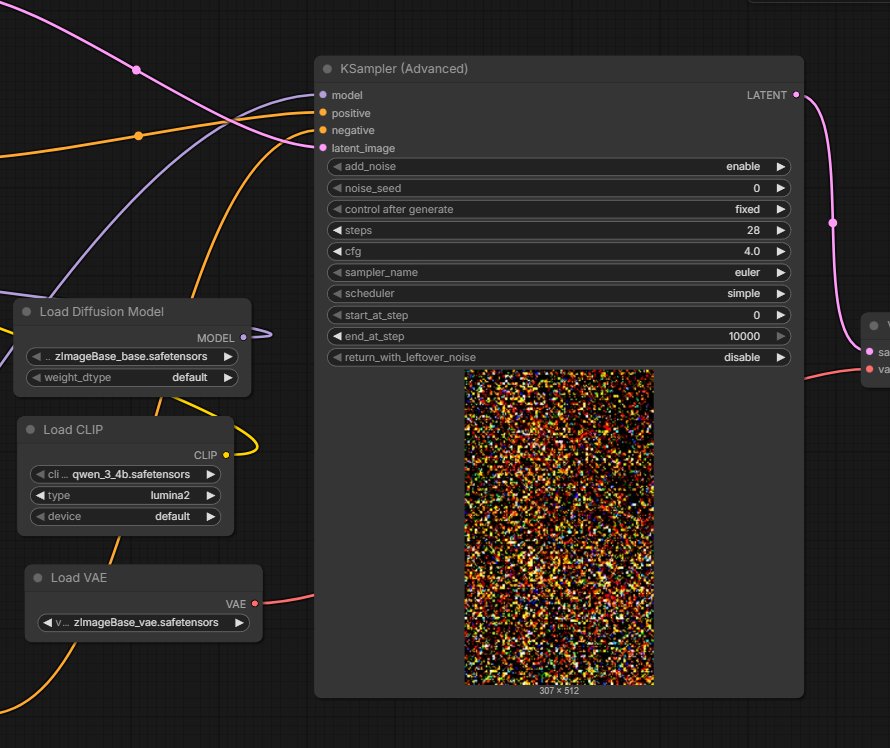 Пробовал начать генерацию на 50 шагов Z-Image в одном KSampler advanced, а потом докрутить на Z-Image-Turbo в другом. Собрал workflow. Получилось долго и плохо.