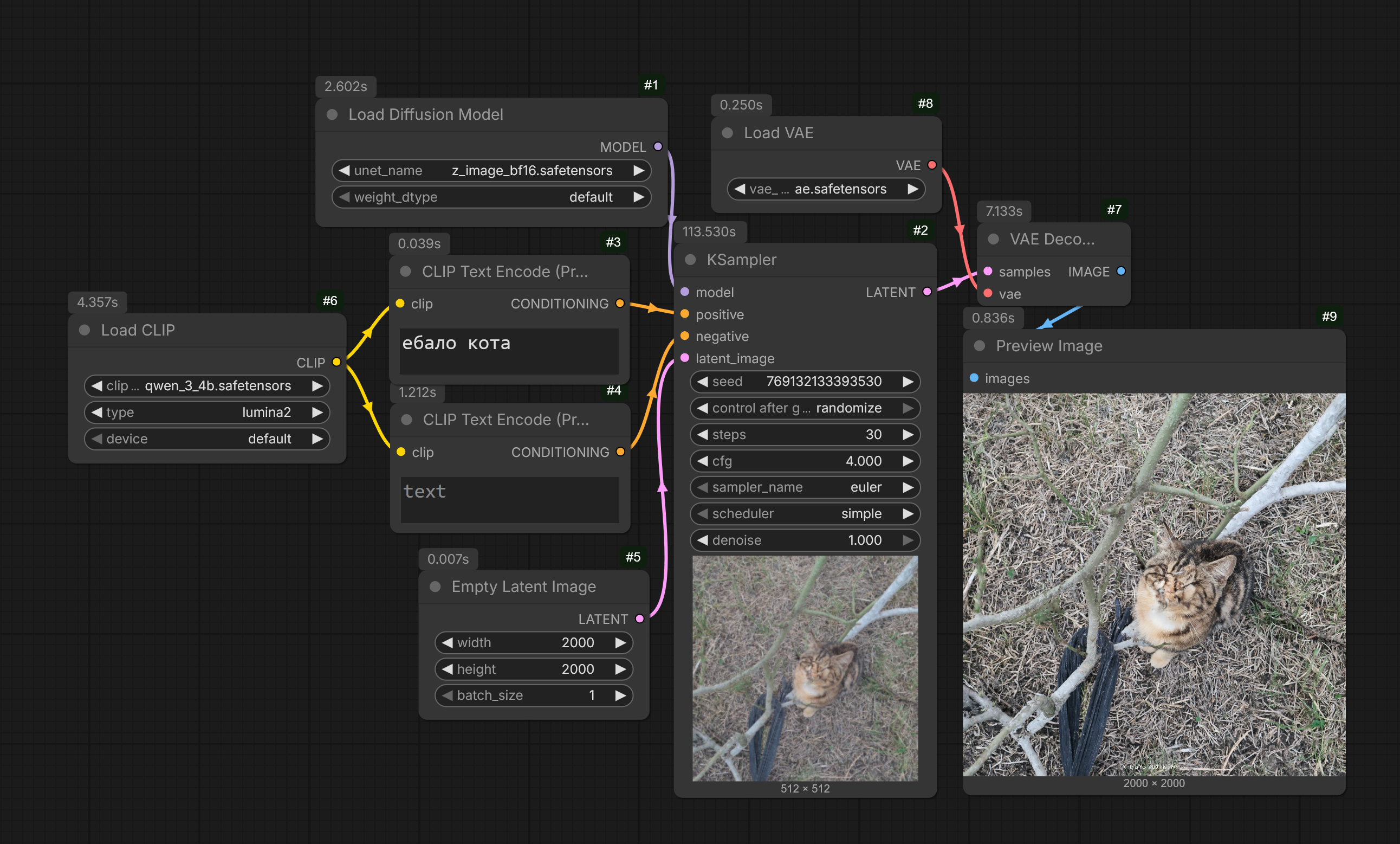 Дальше я пробовал разные фантазии, что ещё с ней можно сделать для генерации (не обучение). То есть я не совсем понимаю, зачем в ComfyUI добавляют workflow для базовых моделей (такое уже было для FLUX.2 [klein]), когда получается, что такая база нужна для обучения, а не для использования её в качестве модели для обычного вывода.