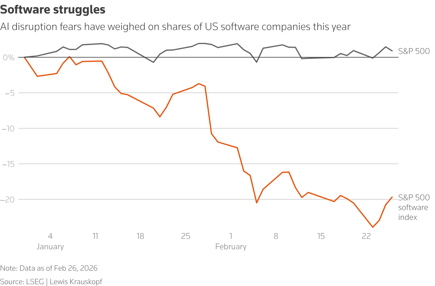 БИЗНЕС БЫЛ БОЛЕЕ ОСТОРОЖЕН Появляются свидетельства того, что компании начинают видеть отдачу от своих инвестиций. Аналитики Morgan Stanley на этой неделе заявили, что наблюдается устойчивый рост числа компаний, сообщающих о количественно измеримых преимуществах от внедрения ИИ, на основе анализа более 10 000 звонков по итогам отчетности и стенограмм конференций четвертого квартала. Около 21% компаний из индекса S&P 500 упомянули как минимум одно измеримое преимущество, по сравнению с 15% в третьем квартале и 10% в последнем квартале 2024 года. Более широкое использование ИИ увеличит рентабельность компаний на 40 базисных пунктов в этом году, по их оценкам. Но до сих пор большинство руководителей и политиков были более осторожны, чем Дорси, когда речь заходила об ИИ и рабочих местах. «То, что мы видим на данный момент, — это рост производительности», — заявила президент ЕЦБ Кристин Лагард в комитете Европейского парламента в четверг. «Но мы пока не видим последствий с точки зрения рынка труда и волн увольнений, которых опасаются, и, как вы знаете, мы будем крайне внимательны в дальнейшем». На Всемирном экономическом форуме в прошлом месяце генеральный директор JPMorgan Chase (JPM.N), открывает новую вкладку, Джейми Даймон сказал, что рабочие места исчезнут, но появятся новые. В пятницу глобальные экономисты Bank of America Клаудио Иригойен и Антонио Габриэль заявили, что ИИ в конечном итоге может затронуть четверть всех рабочих мест. Шок от ИИ, по их словам, будет разрушительным для компаний, которые не выживут, и для работников, которые потеряют свои места, но экономика выиграет, поскольку это создаст новые рабочие места и бизнес-возможности, которые ранее были недосягаемы. Майкл Эшли Шульман, партнер и главный инвестиционный директор Running Point Capital Advisors, предупредил о непреднамеренных последствиях таких радикальных шагов, как у Block. «Стратегия Дорси предполагает, что меньше — значит больше, и что человеческий капитал утратил свое конкурентное преимущество», — сказал он. «Вопрос в том, возвращается ли компания к своим меньшим, более гибким стартап-дням или же она может утратить креативность и человеческую интуицию, которые в первую очередь создали ее самые знаковые продукты».