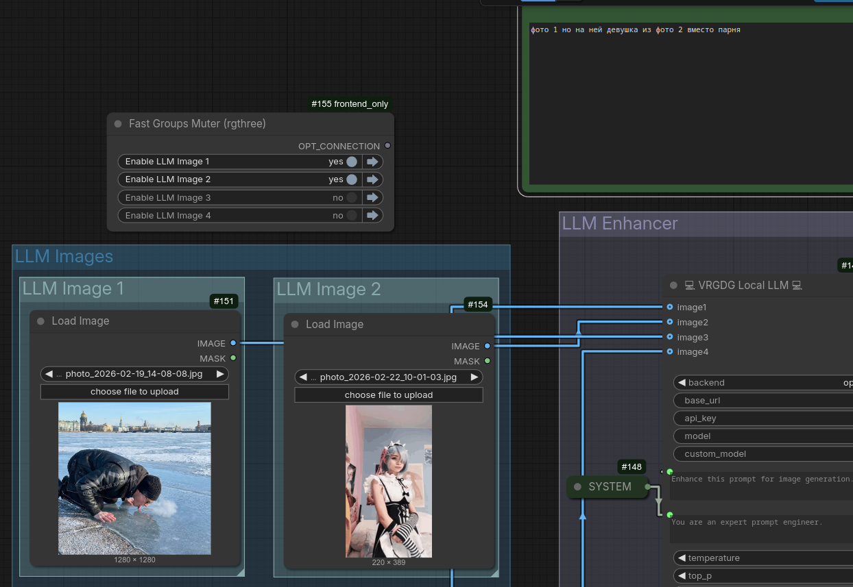 Я посмотрел сколько еще осталось на видеокарте места после анимы и впихнул еще туда Qwen3.5-9B-Uncensored-HauhauCS-Aggressive-Q4_K_M.gguf с mmproj-Qwen_Qwen3.5-9B-bf16.gguf и настроил в воркфлоу ллм. вся эта схема работает прям быстро за 20 секунд и даже вполне неплохой вижен. Можно пользоваться для творческого поиска охуенных идей