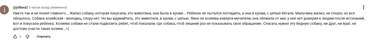 Вот вы угараете, а я мелким был и попал в такой вот замес. Ротвейлер раскормленный до 50! кг порвал мою собаку и начал меня хватать. Только у него челюсти свело он не мог не открыть, ни захлопнуть, я хз что за хрень с ними происходит в момент ража. У питбулей такая же хрень. Так вот. Его не оттащить и не отбиться, если тебе 12 лет. Только пальцами в глаза и до дна, или пальцы в уши и рвать до мозга. Собака в раже вообще не понимает ничего, и не реагирует на болевые, на хозяев, а если кровь попала в рот, то всё. Если есть нож - вгоняйте прямо в глаз, иначе вам просто руку расфигачит и переломает с перекусом. Ногу тоже переломит, просто схватит и начнет дергать, и сил разжать челюсть у нее самой нет. Кто-то из кинологов заявлял, что надо разжимать челюгу - да у тебя сил не хватит, дебил. Только душить или портить глаза, в ухо до мозга втыкать что угодно, если в тебя вцепилась. Хоть ключи от дверей, хоть палец с ногтем. Или ты, или тебя, причем, тебя может и не убить, а просто расхуячит до инвалидности и всё, вырвет руку из сустава или раскусит и декапитацию сделает челюстью. Если бы вернулся в прошлое сейчас, я бы псине глаза выдавил нахуй и зарезал бы без сожалений. Это не собака, а живое оружие, которое хозя не воспитал. Хозю тоже ножом потыкать надо, тамушта по сути, он в тебя выстрелил или ножом тебя бахнул. Самое смешное, что нашлись защитники собаки-убиваки, а потом через 4 года уже смесь ротвейлера и немецкой таскала пиздюка из моей высотки по земле. Тот в руке держал пирожок с мясом и собака его заглотила, а когда тот испугался - руку ему хуйнйла и не могла отцепиться. Дворник ей башку лопатой перерубил нахуй, всё равно не могли разжать челюгу, пиздюка порвала хорошо. МЧС, менты, даже пожарные приехали, реанимачку пригнали. Пиздюка увезли на ремонт, собаку в крематорий, дворник дал показания и его отпустили, так как жизнь ребенка важнее голодной псины. Сам я собачник и кошатник, но боевых собак и их хозяев не уважаю. И чем быдлее хозяева, тем уебищнее бойцовская псина. У меня в окружении есть 2 кинологини (одна от МВД, вторая по призванию), но хозяева бойцовых пород не обращаются к ним для воспитания своих бомб. А потом их в новостях на e1.ru показывают, и суды над этими уебками идут, потому что быдло не надевает на своих мохнатых торпед даже намордники, и те разъебывают всё вокруг - машины, детей, взрослых, даже одна торпеда смогла коня за ногу укусить, который у нас при цирке жил, и конь сделал из пизданутой кусачей торпеды фарш. Я реально думаю, что быдлоны с бойцовскими собаками ебутся, и видят в них членов семьи, по крайней мере, быдло тетки точно.