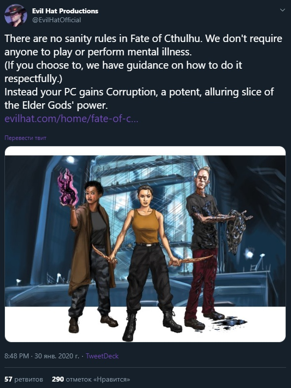 >>1531427 Фейт очень универсален. Главное, как по мне, отличие от Гурпсы - минимум цифр и задротства, максимум истории и художки. Это такая НРИ для гуманитариев, отрицающих нёрдско-физматовские корни хобби. Лично мне этим она и нравится. Но если тебе надо, чтобы всё было строго оцифровано и ты кайфуешь от построения билдов и прокачки - Фейт не твой бро.