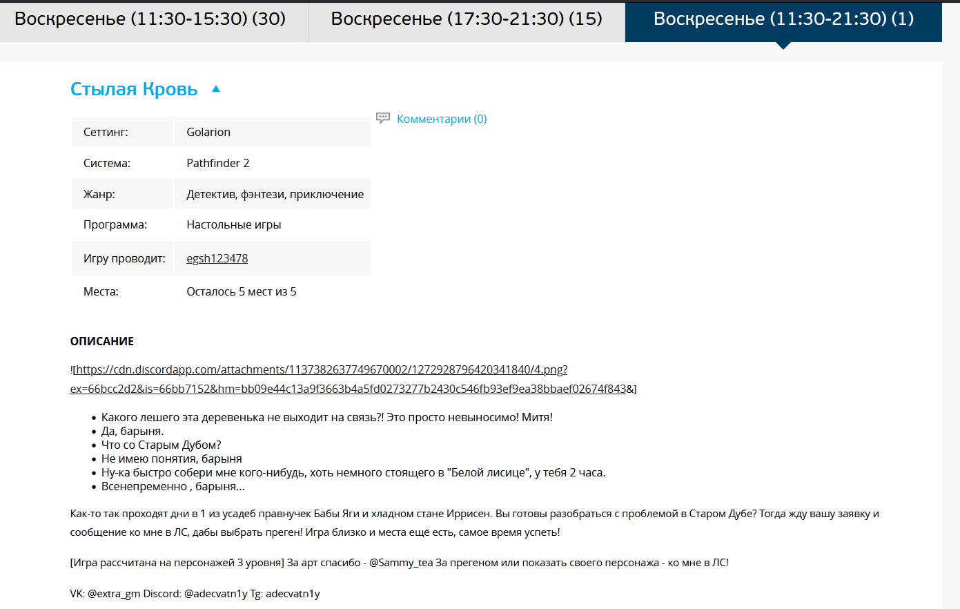 Еще на ролеконе нашел игру в Вск на весь день, пока все свободно.
