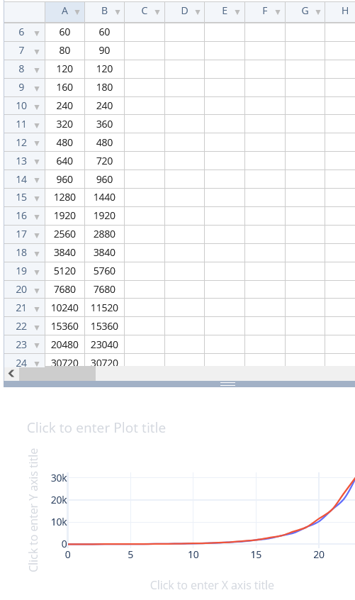 В целом сходится, кроме небольших округлений. Ну и вторую половину затюнить. Возведение в степень, так то не нужно, там числа просто удваиваются - 40, 60, 80, 120, 160, 240...