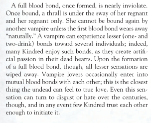Напомните. Если некто вампир/чел/и далее сидит на полных узах крови эти узы же не перебить новыми? Неважно, если пытается вамп с более низким поколением и всякое такое.