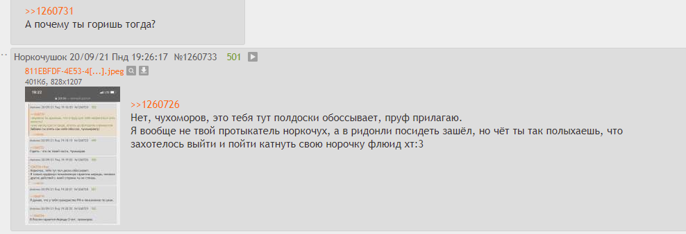 >>1260726 Нет, чухоморов, это тебя тут полдоски обоссывает, пруф прилагаю. Я вообще не твой протыкатель норкочух, а в ридонли посидеть зашёл, но чёт ты так полыхаешь, что захотелось выйти и пойти катнуть свою норочку флюид хт:3