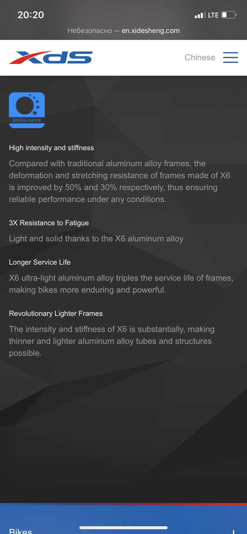 >Твои фантазии. Как тебе известно, норка делает свои рамы не из какого-то дешманского 6061 сплава. а из илитного Х6. А этот Х6 это марка вот этого китайподвала: http://en.xidesheng.com/technology/material/